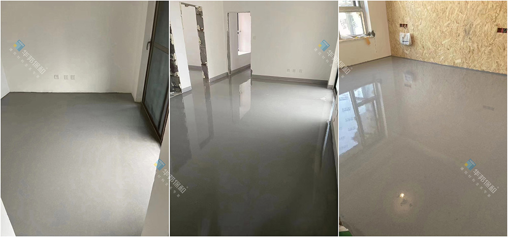 華邦保和石膏基自流平具有良好的流動性,成品平整度高。施工成面后,平整度達到3米靠尺測量,順平3mm誤差,門檻石處誤差小于2mm。
