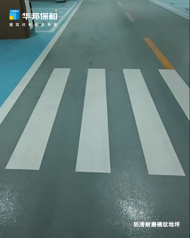 采用“高強(qiáng)水泥基自流平+橘紋防滑地坪漆”兩大核心產(chǎn)品,通過(guò)五層復(fù)合體系(水泥自流平+地坪漆底漆+地坪漆砂漿層+地坪漆膩?zhàn)訉?橘紋地坪漆面漆)實(shí)現(xiàn)“找平-加固-裝飾-防滑”多種功能