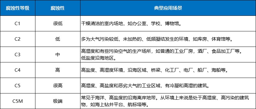 以鋼結(jié)構(gòu)防腐用水性工業(yè)漆為例,首先要了解鋼材對應的腐蝕等級。因為腐蝕性等級不同的場景,所選擇的水性工業(yè)漆類別體系也不同。根據(jù)《ISO12944腐蝕環(huán)境判定標準》,大氣環(huán)境對裸露鋼板的腐蝕程度分為C1、C2、C3、C4、C5、C5M級別。C1、C2級別為輕防腐,此環(huán)境下的鋼結(jié)構(gòu)和設備等防護多選擇水性醇酸涂料體系、水性丙烯酸涂料體系;C3、C4防腐級別環(huán)境下,多選擇使用水性環(huán)氧涂料體系、水性聚氨酯涂料體系產(chǎn)品;對于C5或C5M以上,目前水性涂料難以達到防腐要求。