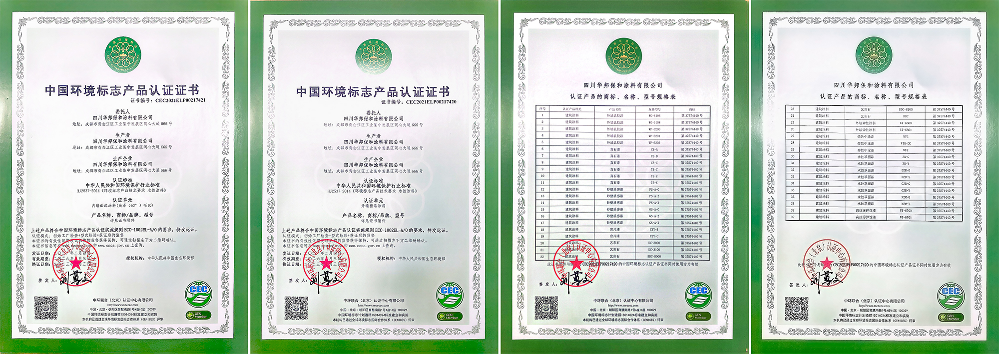 ↑ 華邦保和墻面涂料產(chǎn)品系列-中國(guó)環(huán)境標(biāo)志產(chǎn)品認(rèn)證證書