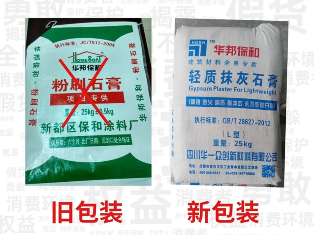 2022年3月11日-12日,我司在調(diào)查取證中發(fā)現(xiàn),內(nèi)江市某建材有限責(zé)任公司何某超向客戶李某出售假冒華邦保和注冊商標(biāo)的輕質(zhì)抹灰石膏(粉刷石膏/膩子),通過客戶指認(rèn),現(xiàn)場查封假冒貨品360袋,合計使用超過10噸。